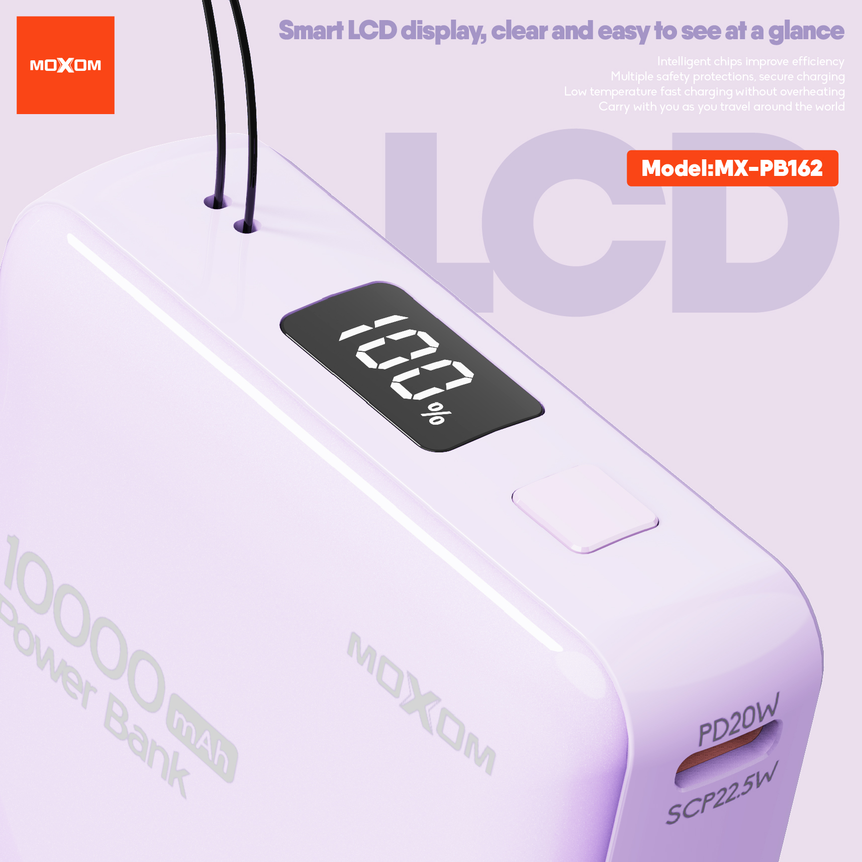 10000mAh high-capacity rechargeable battery,smart LCD display can show the remaining power at any time, no need to worry about low power