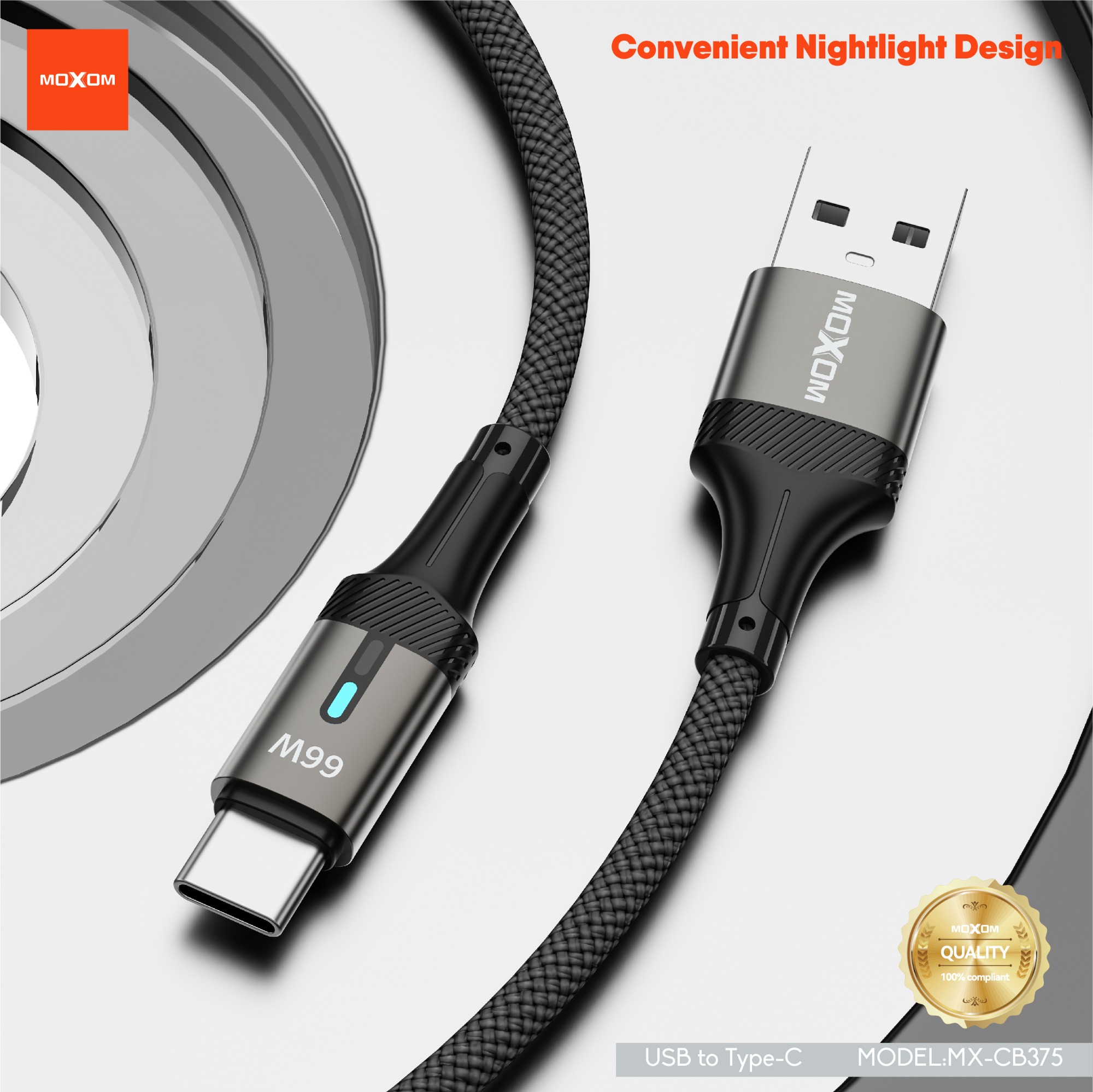 | Specification: Model:MX-CB375 Length:1m Output:66W Connector: USB to Type-C