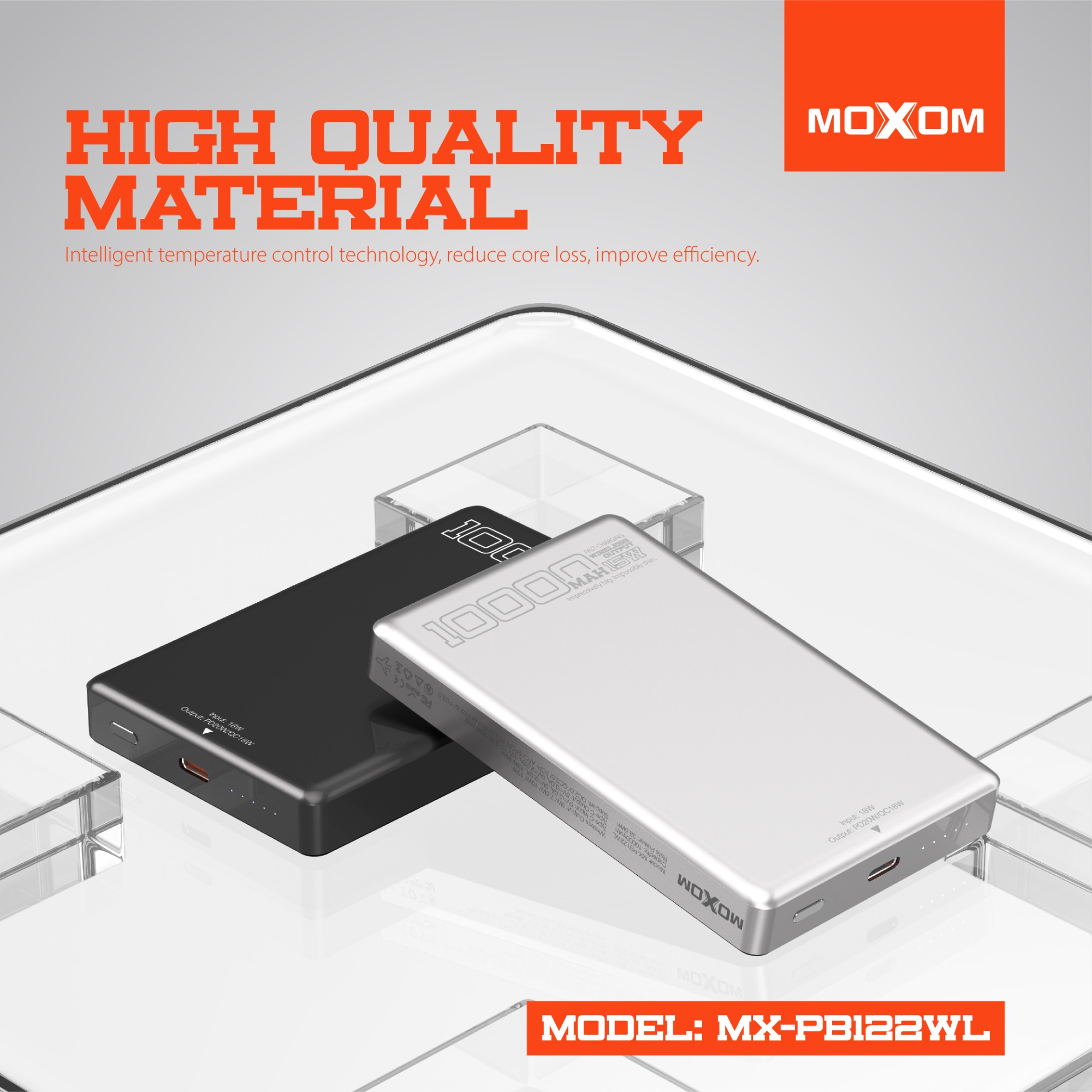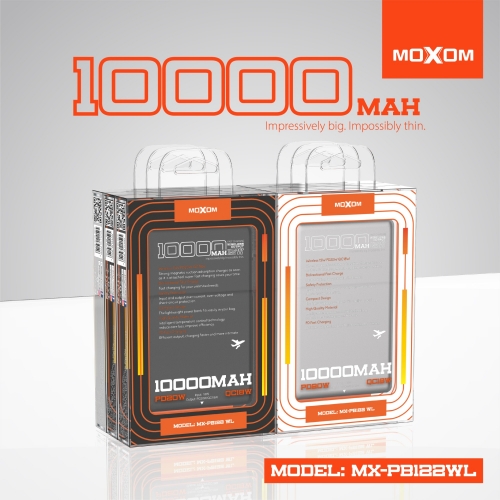 | Specification: Model:MX-PB122WL Capacity: 10000mAh/3.85V Rate Power:38.5Wh Type-C Input:5V-3.0A/9V-2.0A (18W Max) Type-C Output:5V-3.0A/9V-2.22A/12V-1.67A (20W Max) Wireless Output:5W/7.5W/10W/15W Support: QC2.0/QC3.0/FCP/AFC/SFCP/PE1.1/PE2.0/PD2.0/PD3.0 Weight:178g |