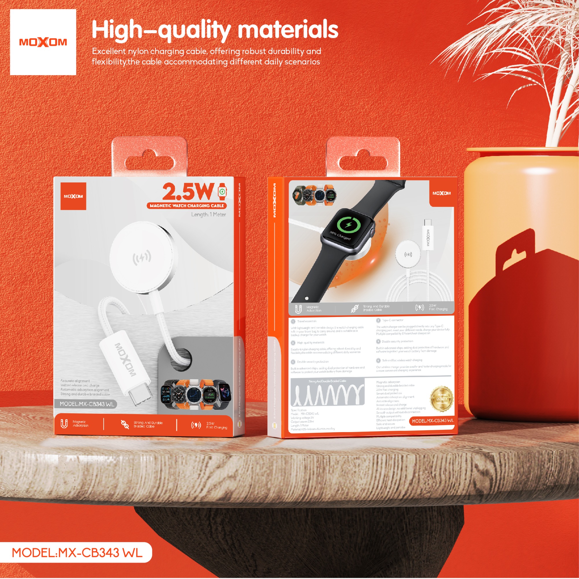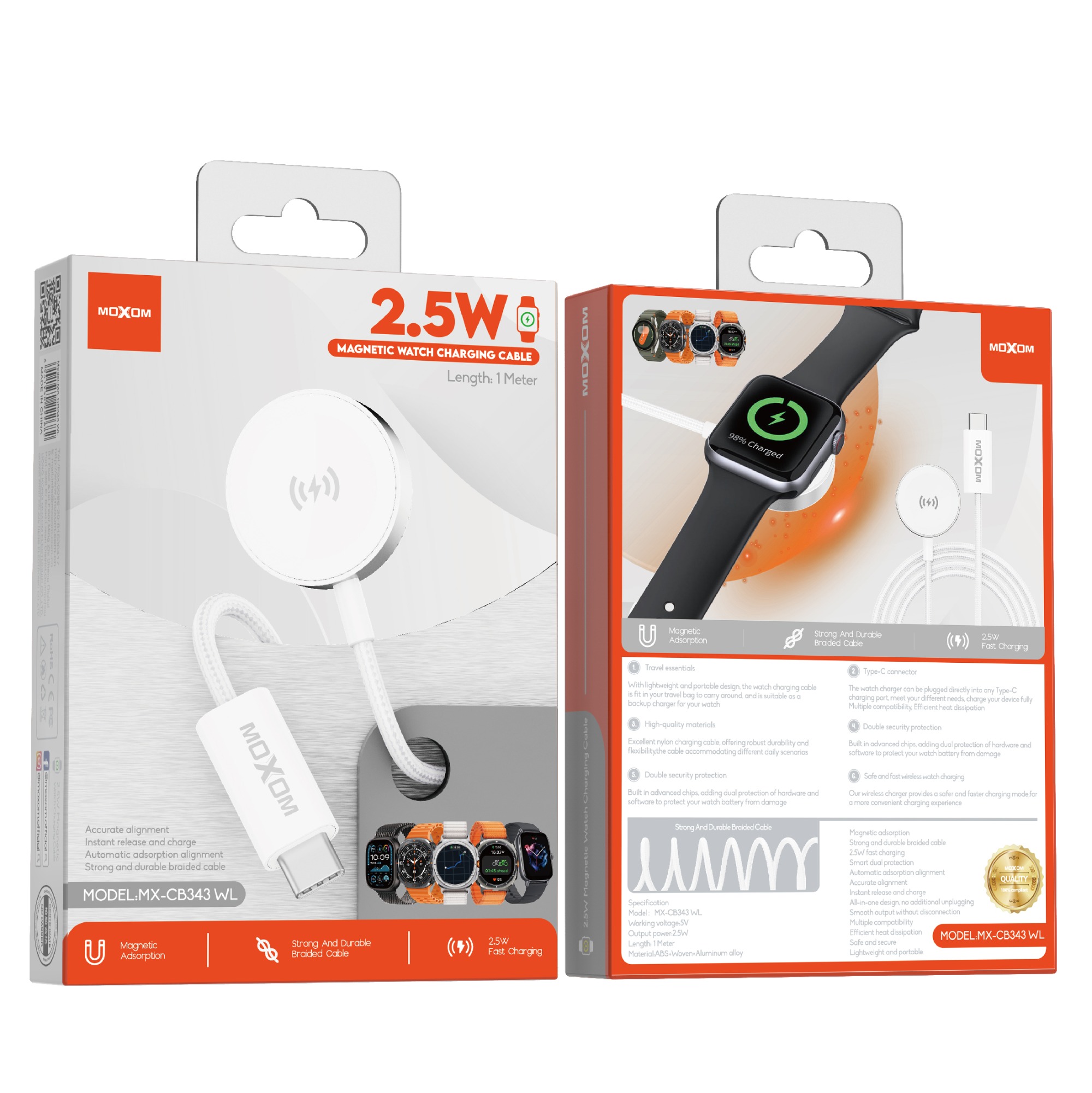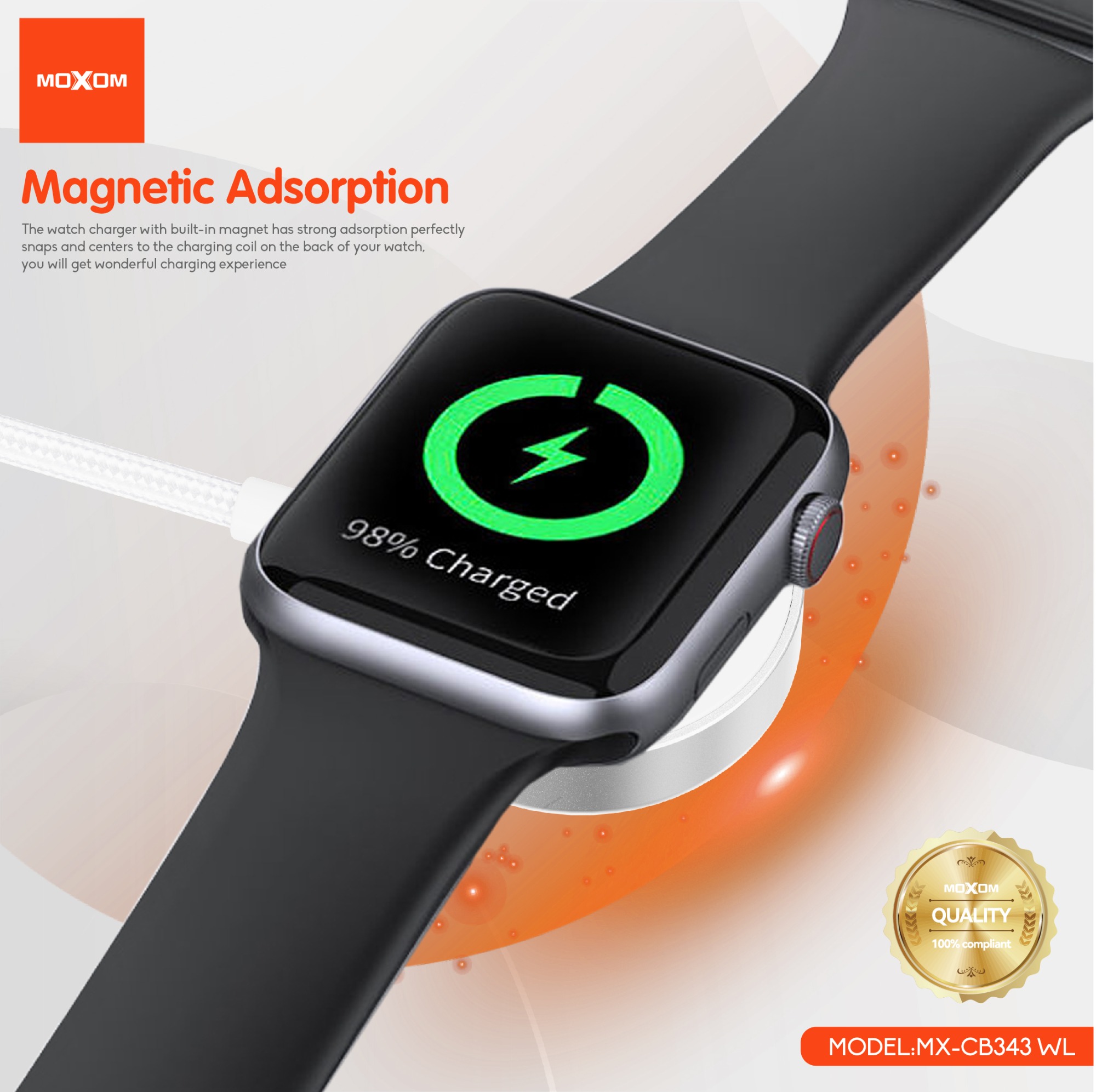 The watch charger with built-in magnet has strong adsorption perfectly snaps and centers to the charging coil on the back of your watch, you will get wonderful charging experience
