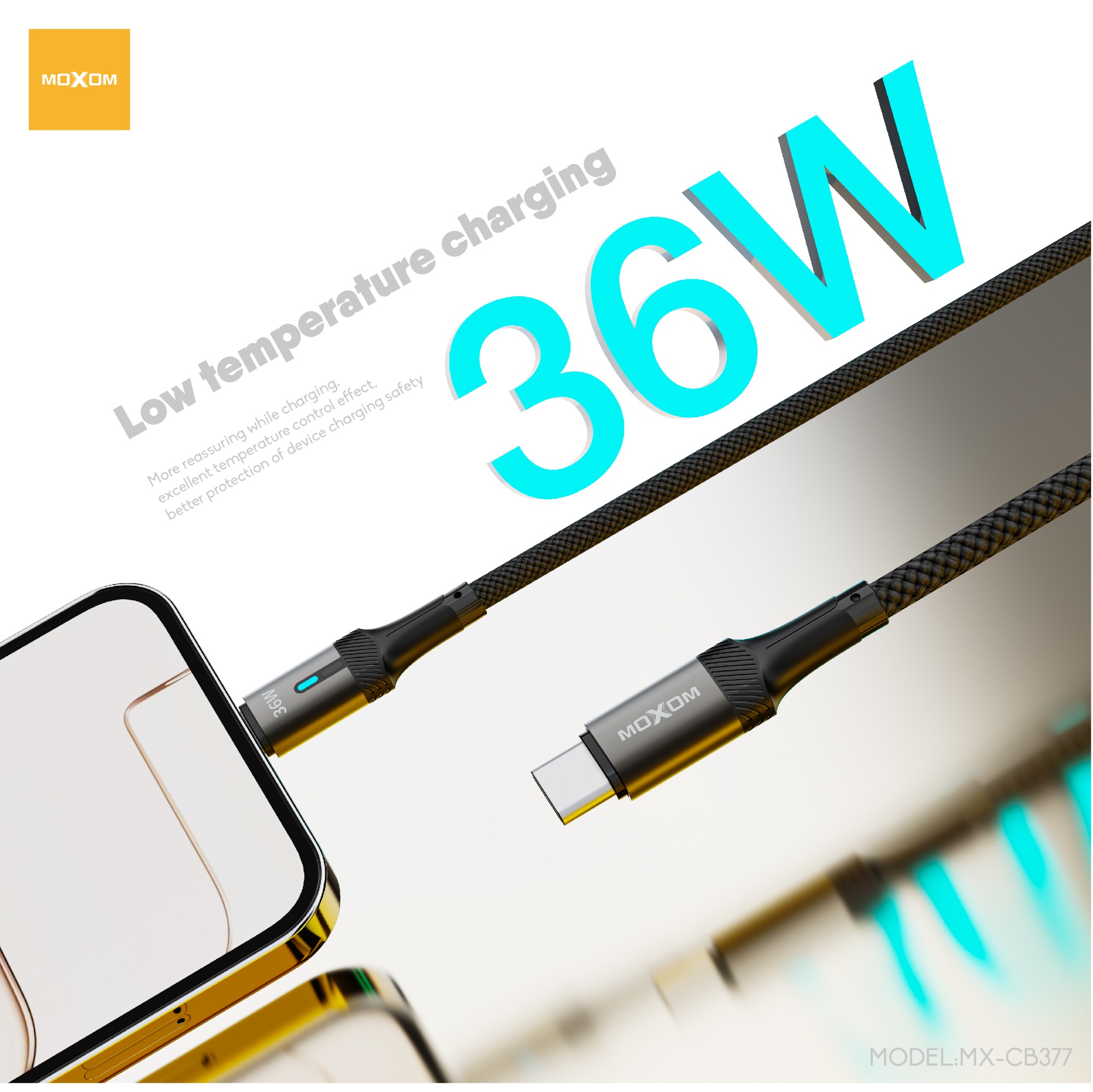 | Specification: Model:MX-CB377 Length:1m Output:36W Connector: Type-C to Lightning |