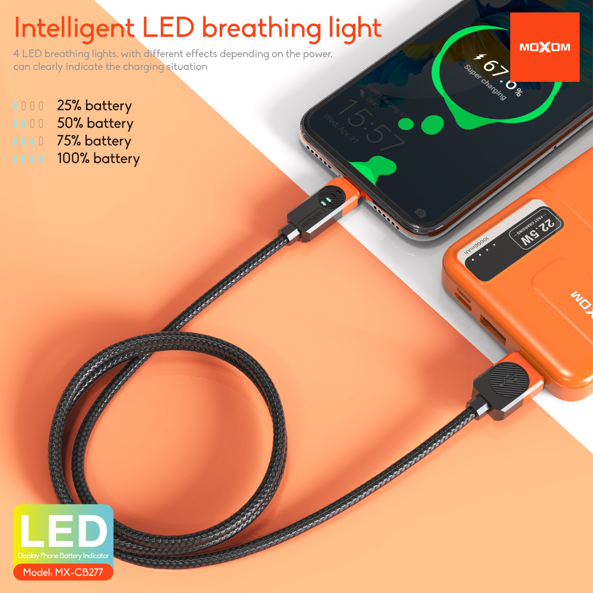 4 LED breathing lights, with different effects depending on the power, can clearly indicate the charging situation