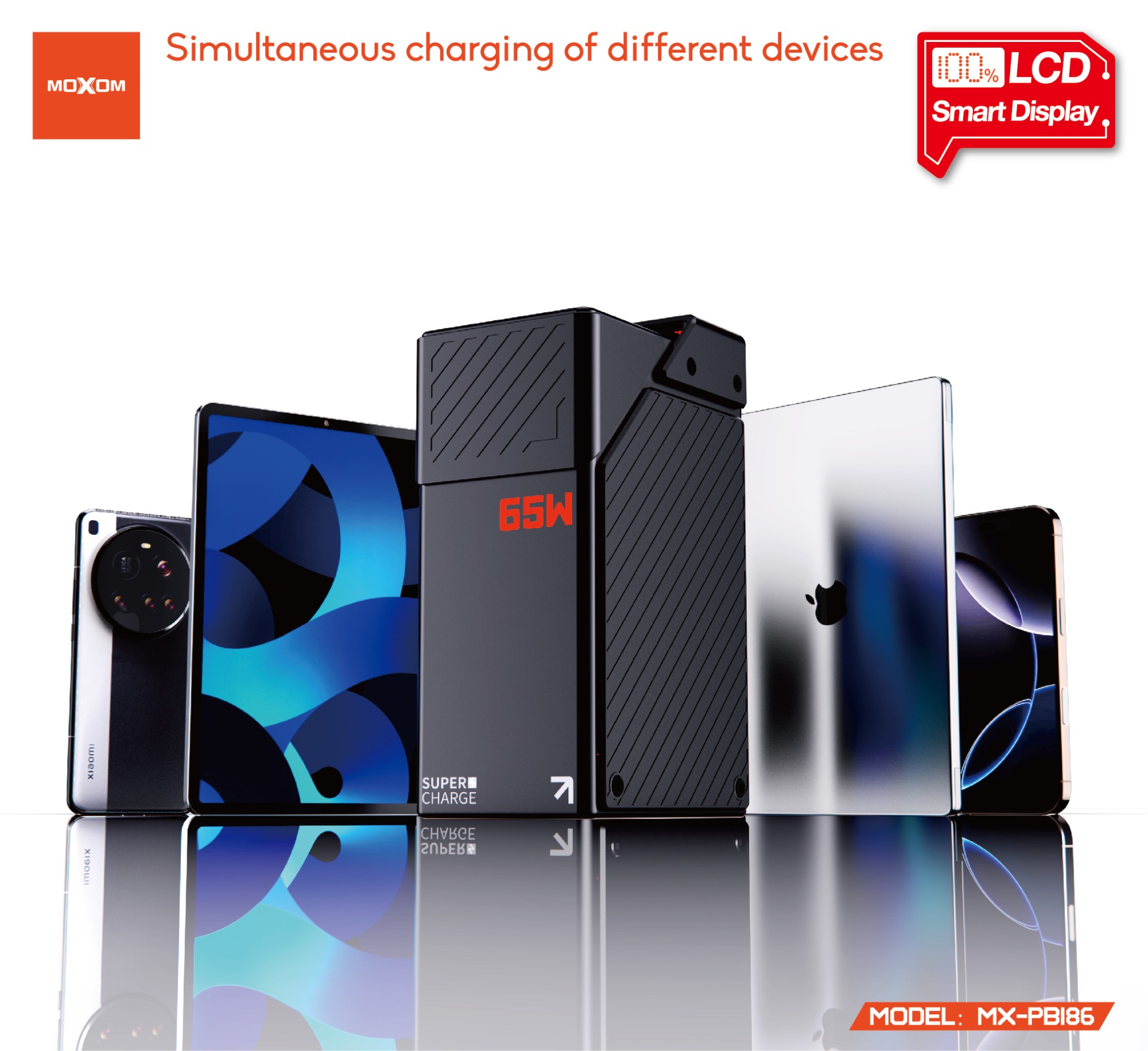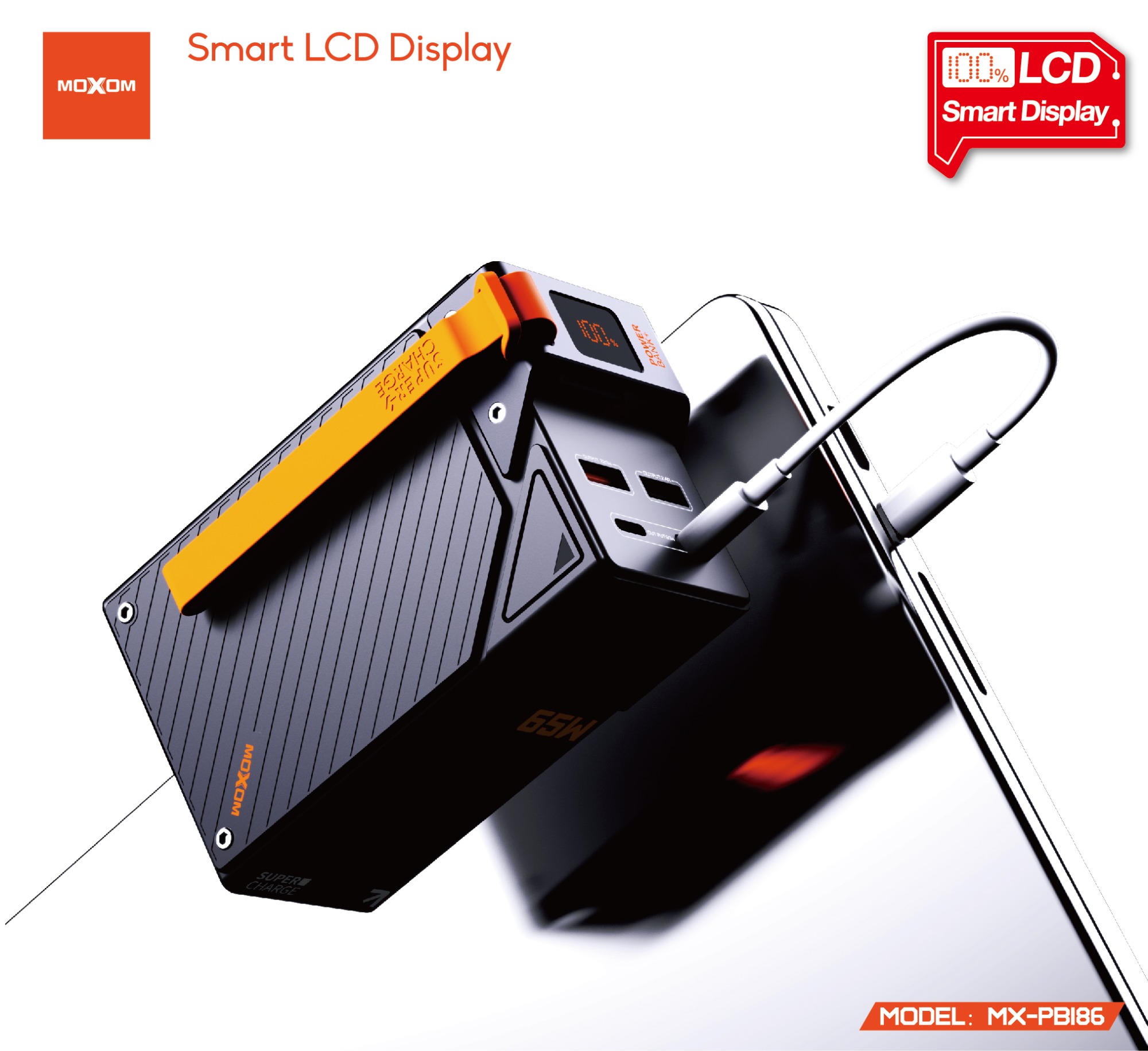 | Rapid and efficient charging It's optimized to deliver a whopping 65W of power,enjoy quick and efficient charging, whether you're powering up your smartphone, tablet, or other devices Smart safety protection It’s got built-in smart protection against overcharging, over-discharging, and overheating, so you can charge your devices with total peace of mind Smart LCD display With a sleek, compact design, this portable power bank is incredibly portable,the digital display shows remaining battery life at a glance, ensuring you always stay powered and confident on the go Safe and practical protection These portable power banks have sufficient large capacity,can supply multiple full charges to your devices, ensuring you have backup power when you need it mos Multi-port & powerful output Delivers an impressive output power,versatile ports facilitate rapid charging, addressing power needs efficiently in any location Portable lanyard design This power bank is very reliable and durable,it provides more convenience in your daily life or in your trip |