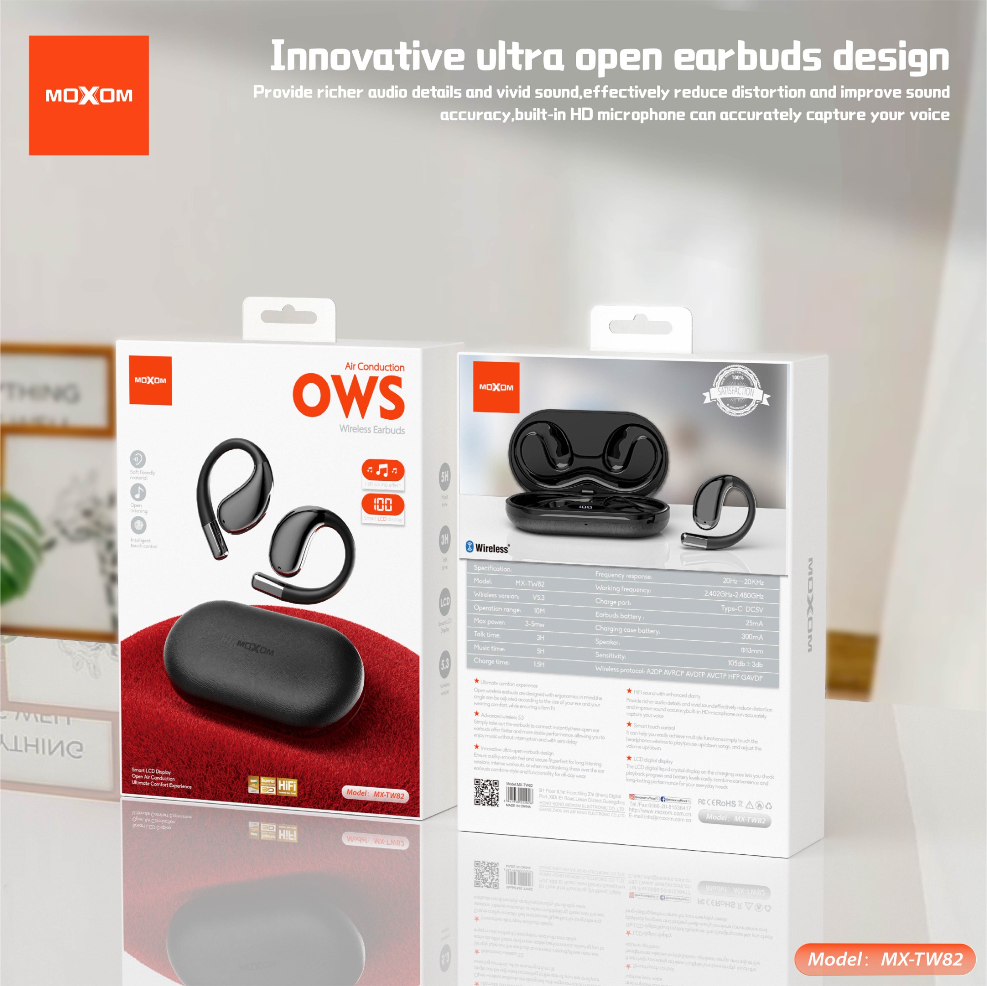 Open wireless earbuds are designed with ergonomics in mind,the angle can be adjusted according to the size of your ear and your wearing comfort, while ensuring a firm fit