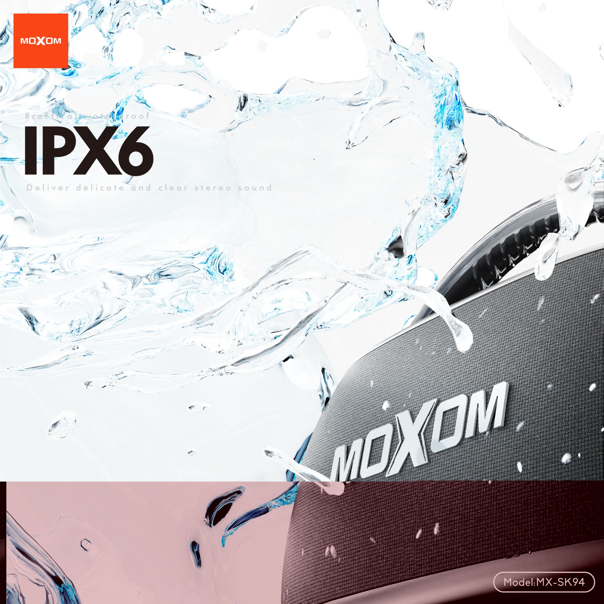 Not afraid of rain splashes, very suitable for beaches, camping, IPX6 rated speakers are resistant to mild water mist and splashing, but cannot be partially or completely immersed in water