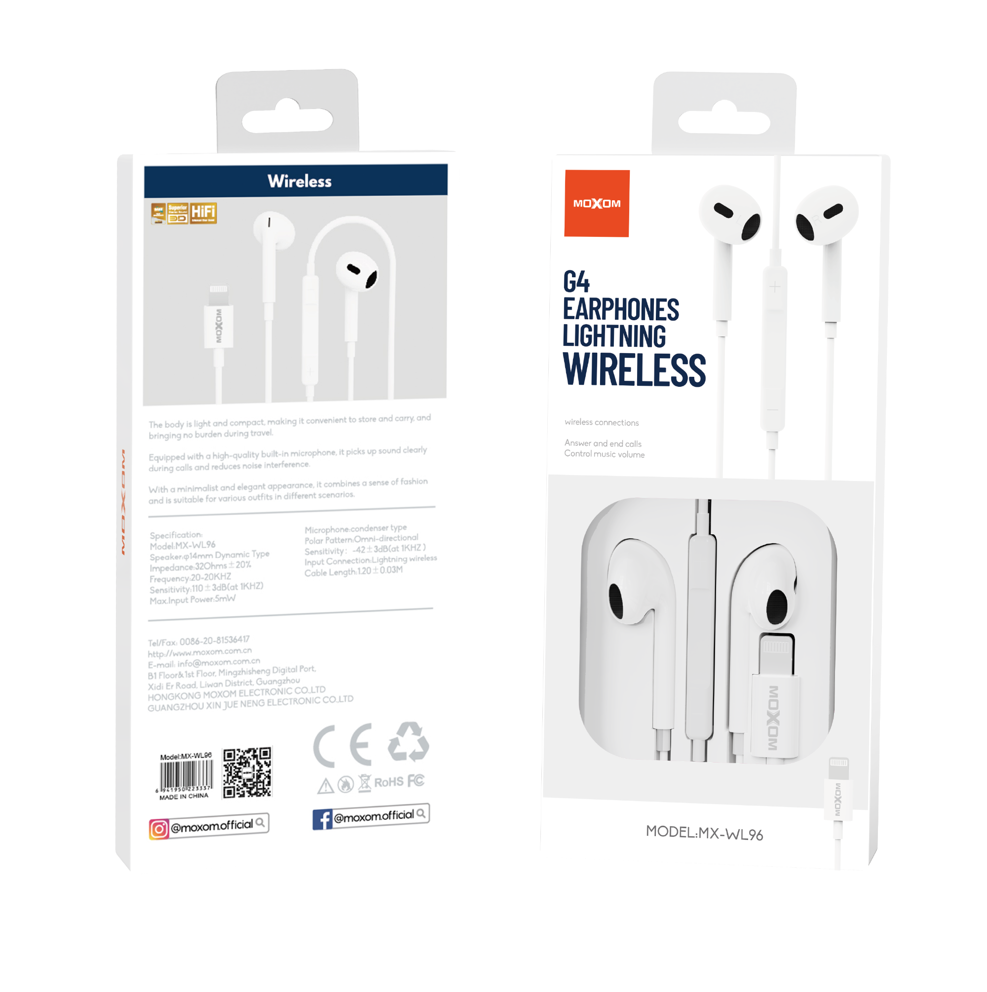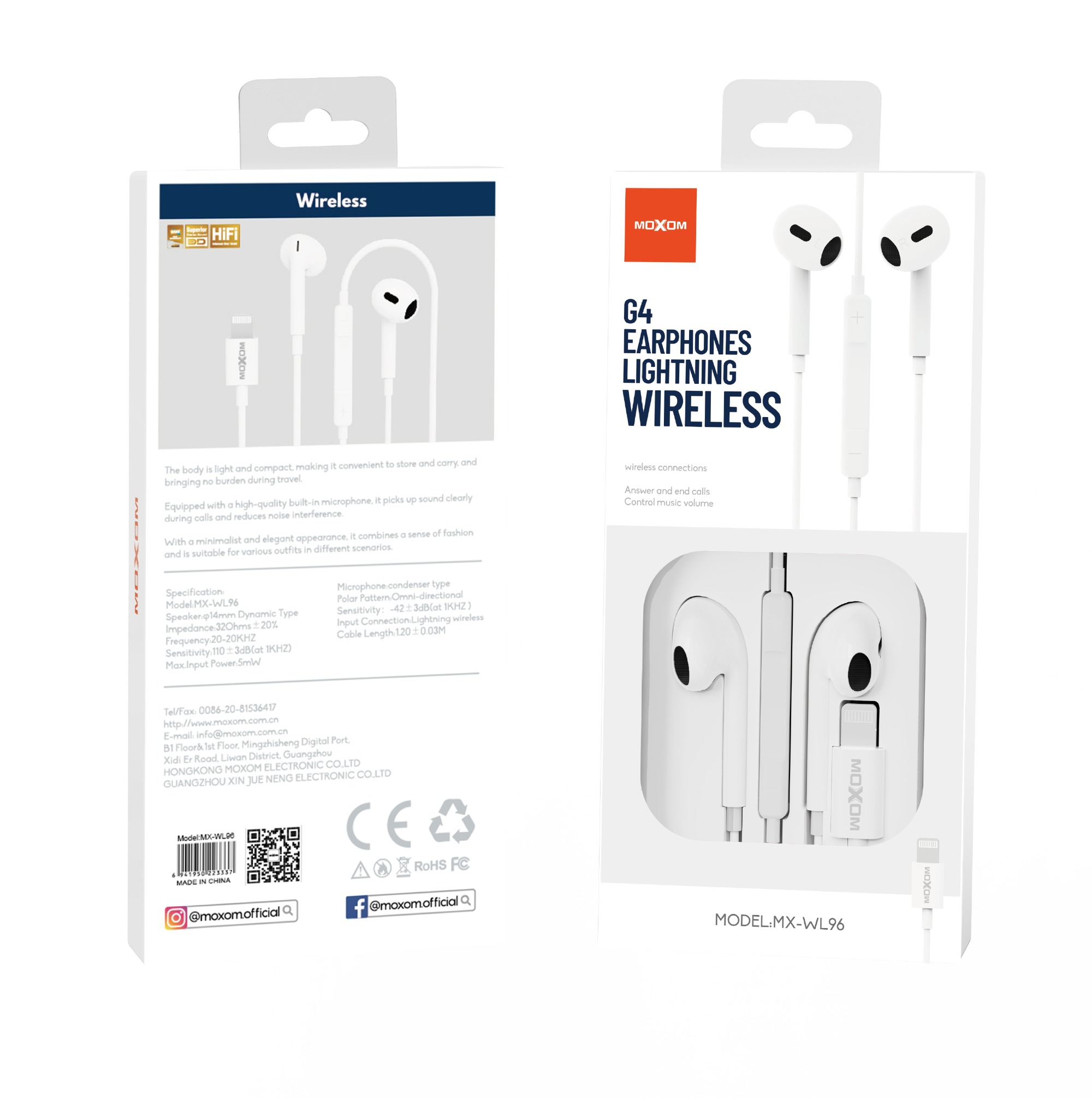 | Specification: Model:MX-WL96 Speaker:φ14mm Dynamic Type Impedance:32Ohms±20% Frequency:20-20KHZ Sensitivity:110±3dB(at 1KHZ) Max.Input Power:5mW Microphone:condenser type Polar Pattern:Omni-directional Sensitivity:-42±3dB(at 1KHZ ) Input Connection:Lightning wireless Cable Length:1.20±0.03M |