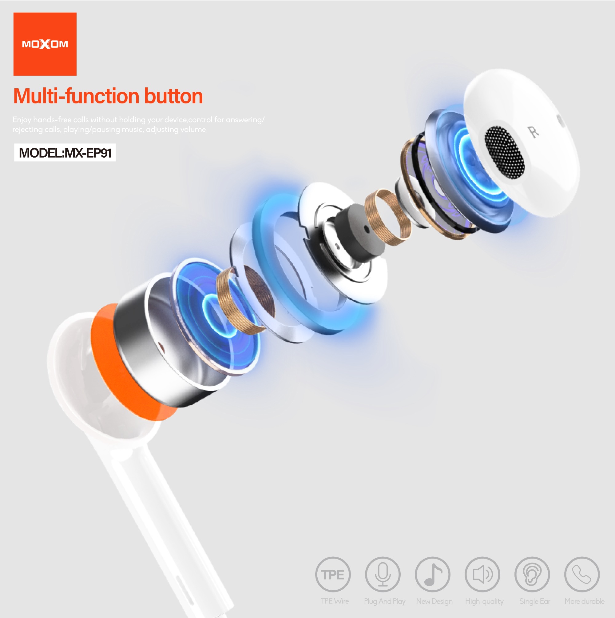 Enjoy hands-free calls without holding your device,control for answering/rejecting calls, playing/pausing music, adjusting volume
