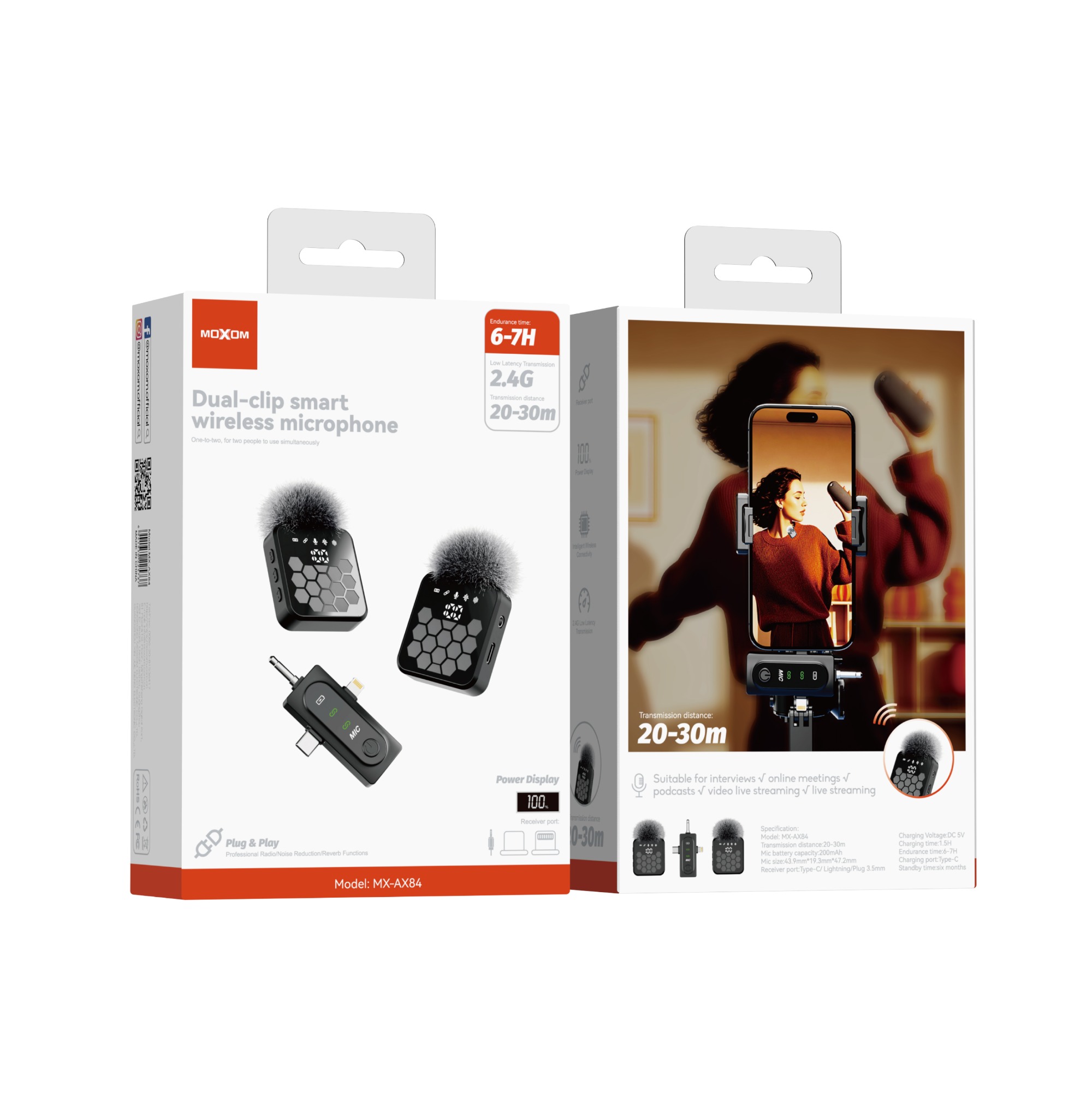 | Intelligent Wireless Equipped with intelligent wireless technology, it enables automatic and fast pairing between devices, ensuring stable signals for convenient and hassle-free use Professional Radio/Noise Reduction/Reverb Functions Built-in professional sound pickup, intelligent noise reduction, and reverb functions, it optimizes your voice with one click—whether for interviews, singing, or daily conversations, your voice will be clear and pleasant Strong Anti-Interference Boasting strong anti-interference capabilities, it effectively filters out ambient noise and signal interference, ensuring your voice remains pure and clear even in complex environments Clear Sound Pickup at Long Distances Allows you to move freely in larger spaces without worrying about signal attenuation or interruption Ultra-Low Latency with 2.4G Transmission Achieves ultra-low latency and audio-visual synchronization, delivering a smooth listening experience Multi-Scenario Adaptability Whether for vlog shooting, live streaming, meeting recording, or outdoor interviews, it’s your reliable on-the-go partner |