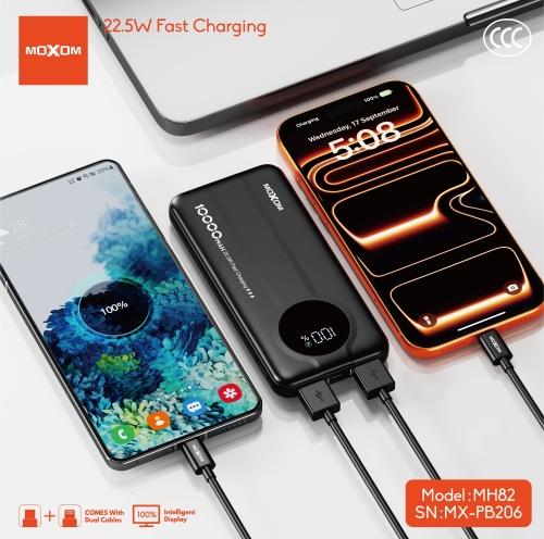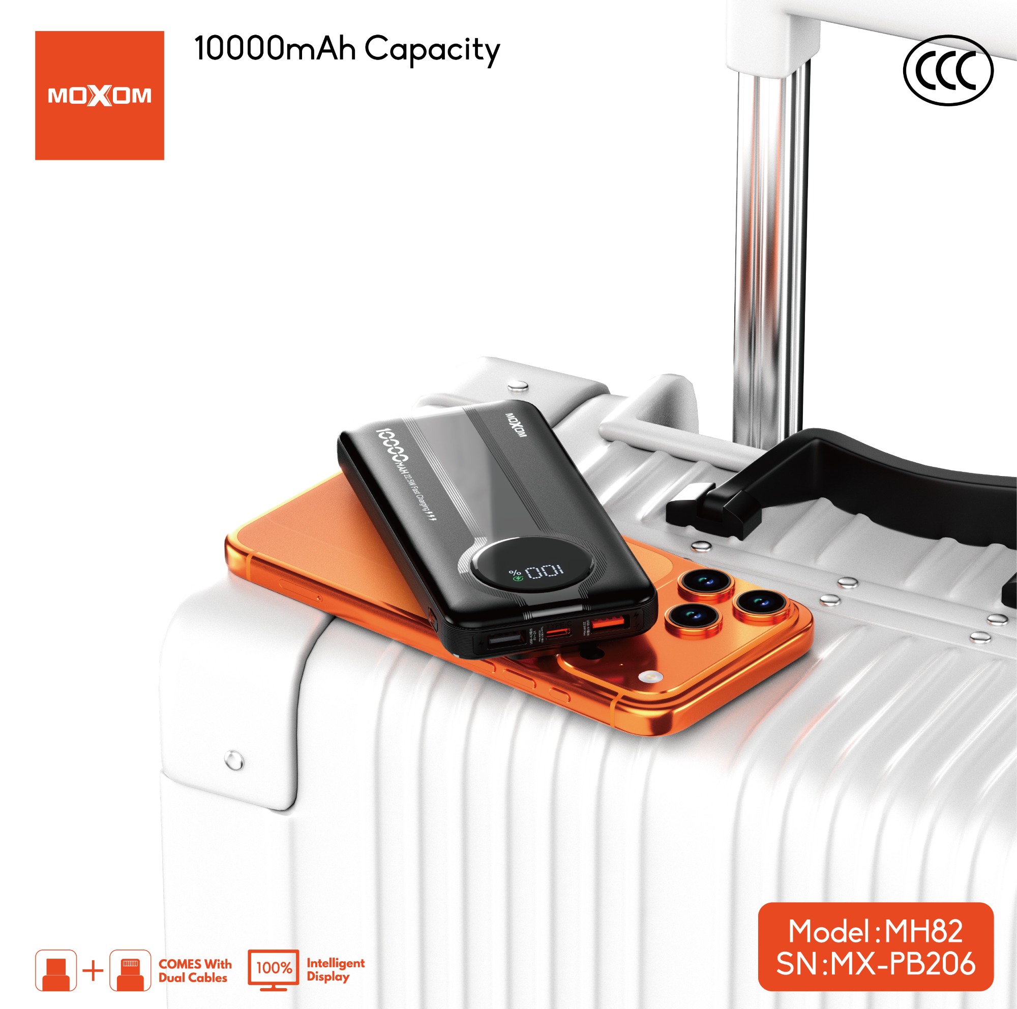 The digital display power bank allows clear monitoring of remaining battery; protected by the smart protection chip