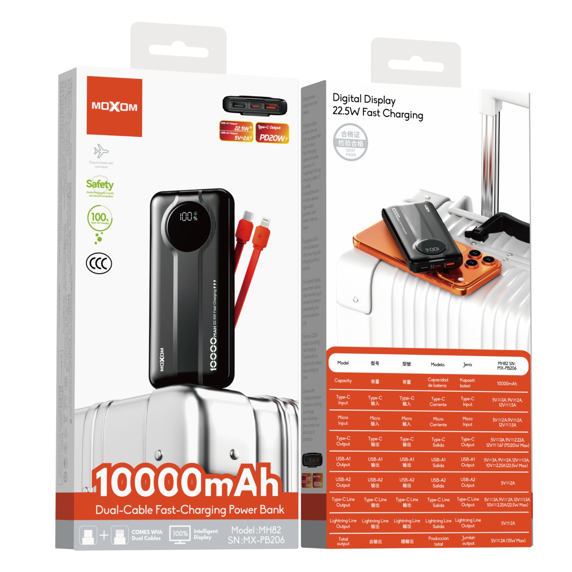 Multiple safety protections are fully equipped; the built-in dual cables eliminate the worry of forgetting to bring charging cables. It is widely compatible with multiple devices, lightweight, portable, and doesn't take up space