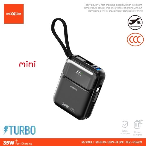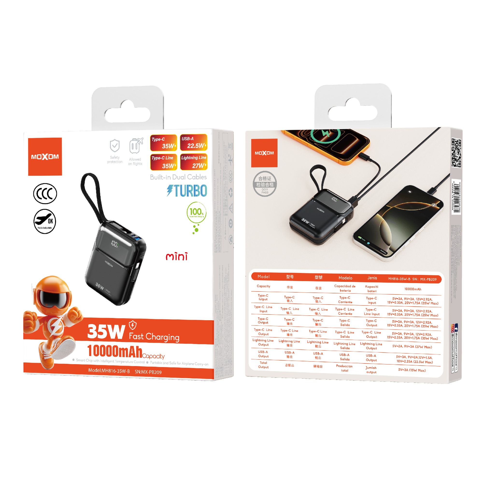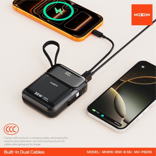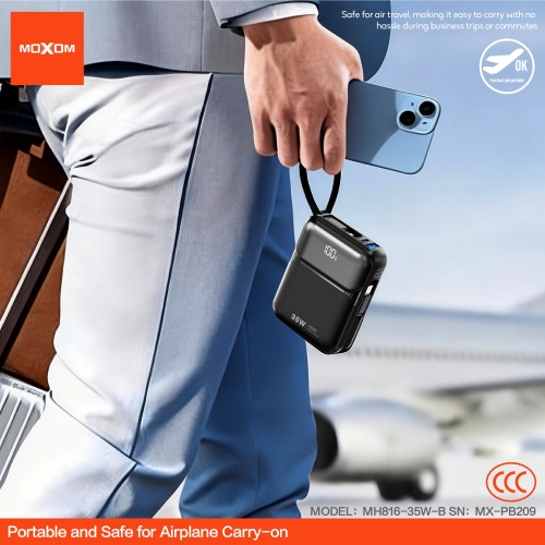 | 35W Fast Charging 35W powerful fast charging, paired with an intelligent temperature control chip, ensures fast charging without damaging devices, providing greater peace of mind Built-in Dual Cables Comes with two built-in charging cables, eliminating the need to carry extra ones—no more hauling a bunch of cables when going out to charge High-Power Output Stable high-power output supports simultaneous charging of multiple devices, with no false power claims or lag Smart Chip with Intelligent Temperature Control The smart chip precisely regulates, featuring multiple protections and intelligent temperature control for worry-free charging throughout Portable and Safe for Airplane Carry-on Safe for air travel, making it easy to carry with no hassle during business trips or commutes Supports Simultaneous Charging of Multiple Devices Designed with multi-port simultaneous power supply, it meets the need for charging multiple devices at once—plenty for family trips |