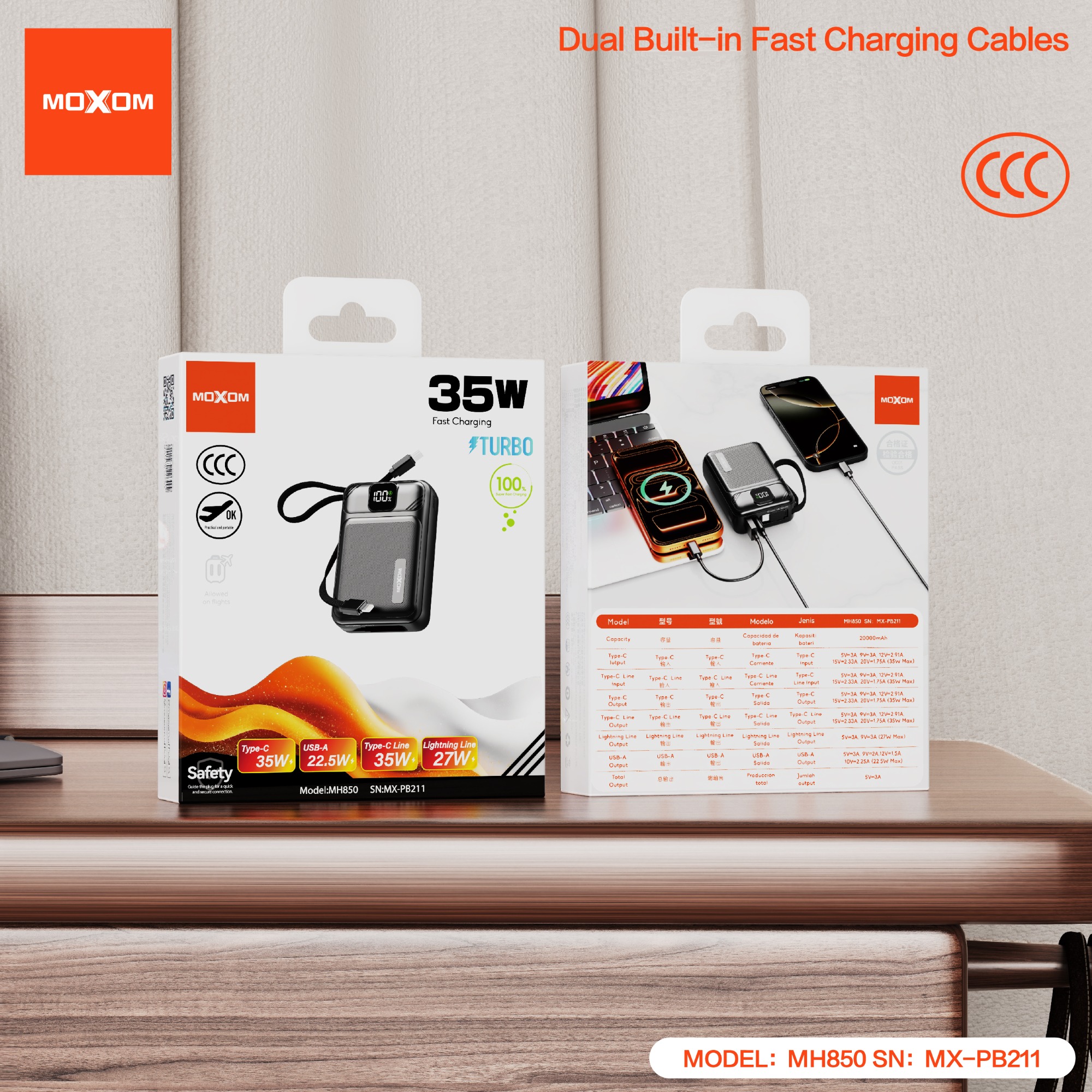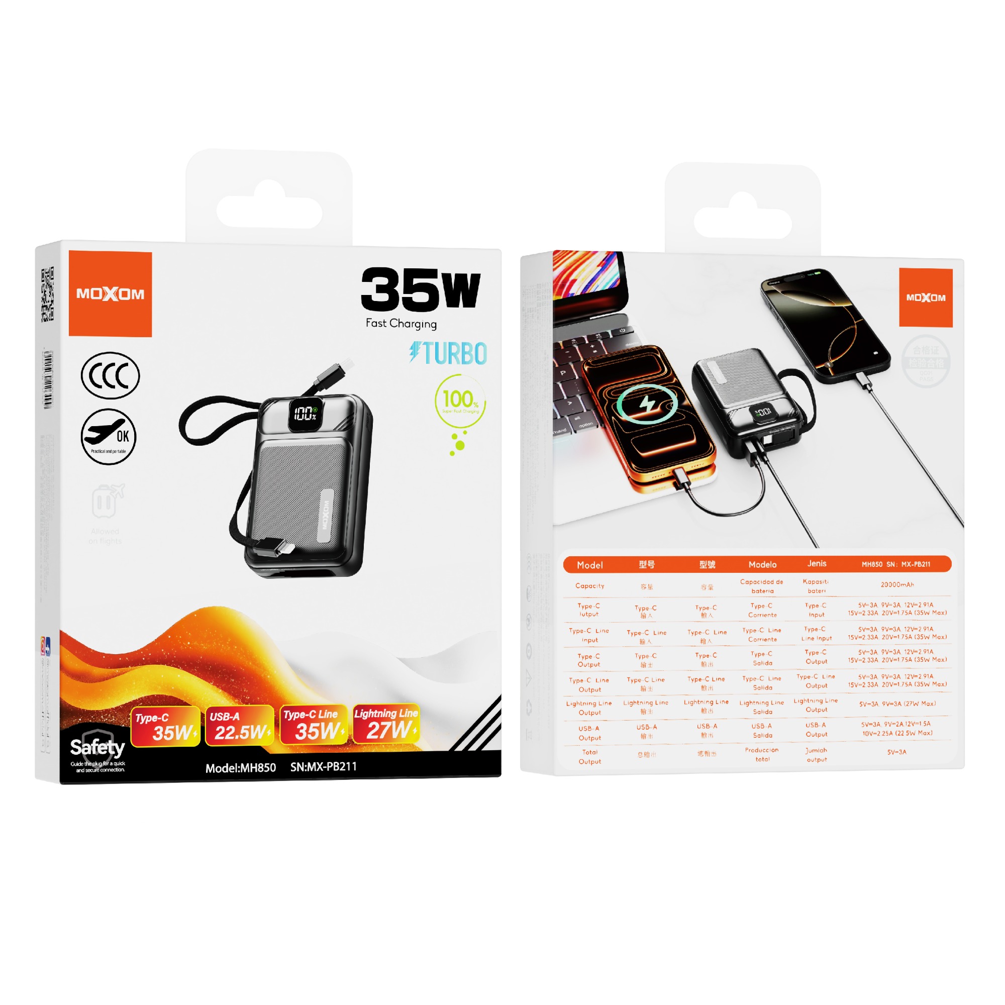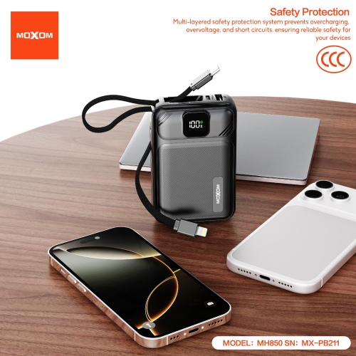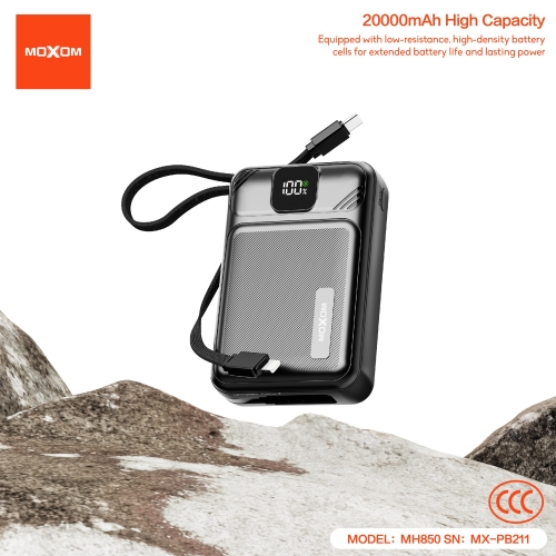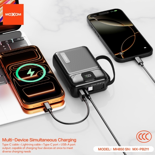 | 3C Certification for Flight Smooth Passage Through Airport Security Multi-Device Simultaneous Charging Type-C cable + Lightning cable + Type-C port + USB-A port output, capable of charging four devices at once to meet diverse charging needs 20000mAh High Capacity Equipped with low-resistance, high-density battery cells for extended battery life and lasting power Fast Charging Cable + Lanyard Pull to charge, retract and carry with ease Mini and Portable Compact size that fits in your pocket, lightweight and portable for charging anytime, anywhere—effortless to carry on the go Safety Protection Multi-layered safety protection system prevents overcharging, overvoltage, and short circuits, ensuring reliable safety for your devices |