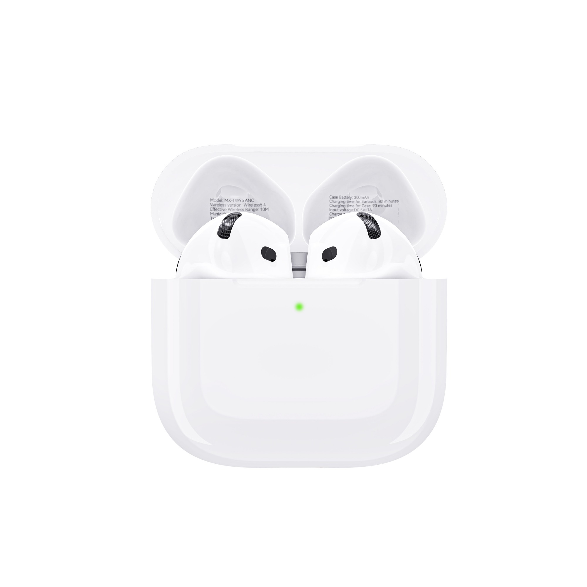 | Specification: Model: MX-TW95 ANC Wireless version: Wireless5.4 Effective Wireless Range: 10M RF Frequency:2.4GHz-2.48GHz Speaker:Φ13mm MIC : -42dB±3 Noise Reduction Depth: -25dB±3 Speaker impedance: 32Ω±10% at 1000Hz 126 mV Sensitivity: 115.7±3dB Music time: 4H Talk time: 3H Earbuds Battery: 25mAh Case Battery: 300mAh Charging time for Earbuds :80 minutes Charging time for Case: 90 minutes Input voltage:DC5V/1A Charge port:Type-C Speaker Power:5mW |
