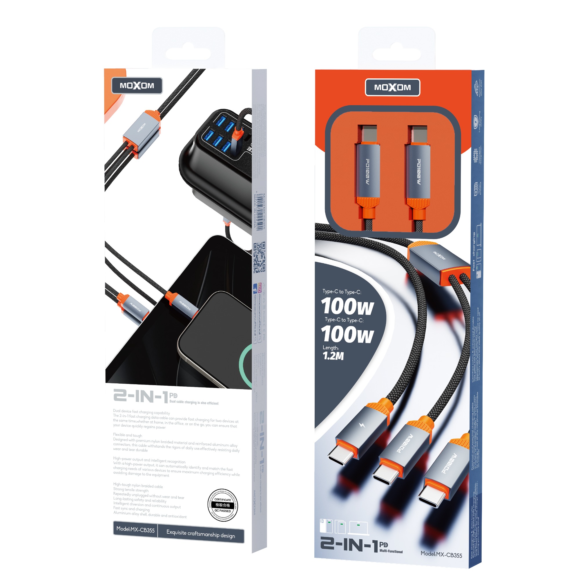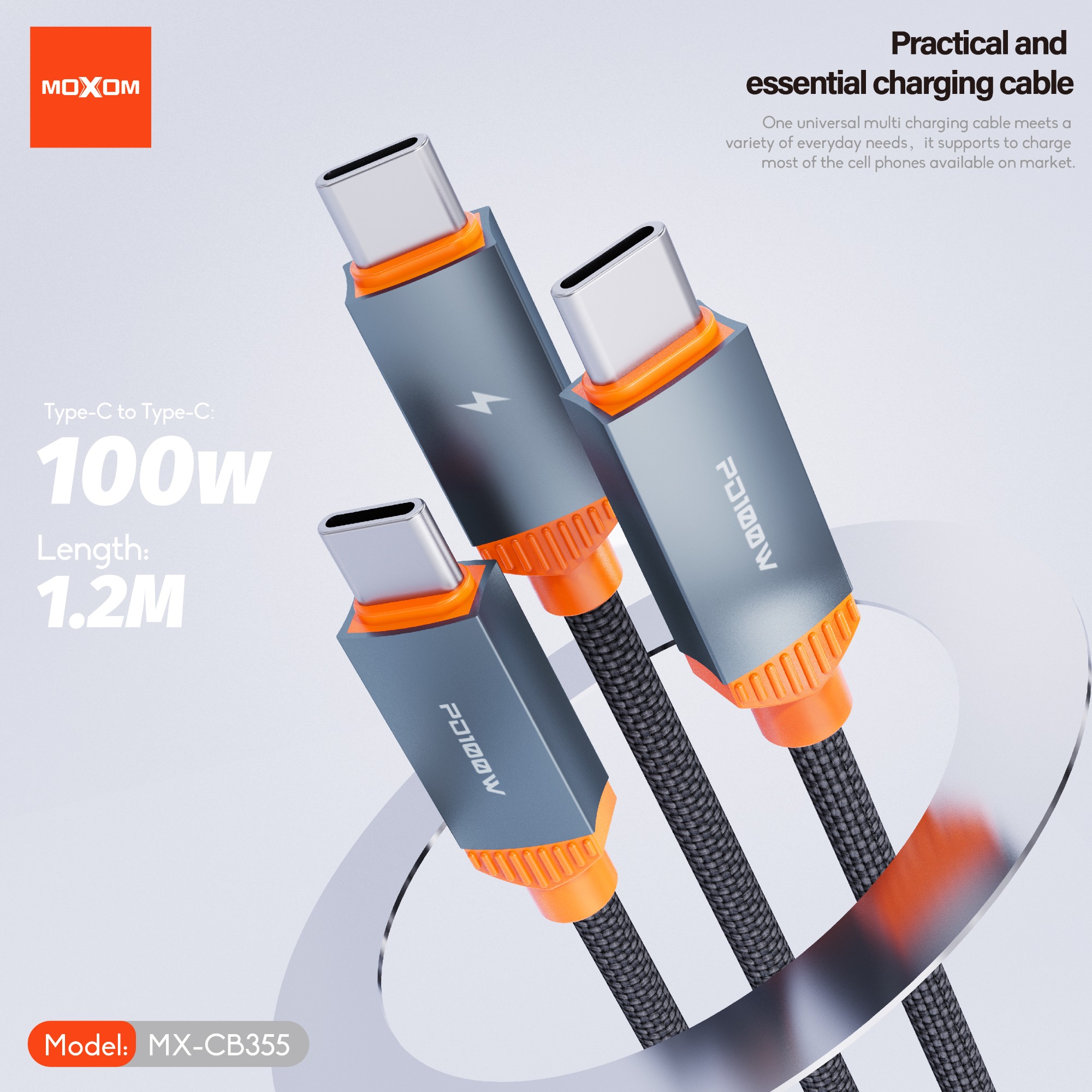 | Specification: Model:MX-CB355 Length:1.2m Output: Type-C to Type-C:100W Total Output: 5V3A |