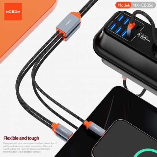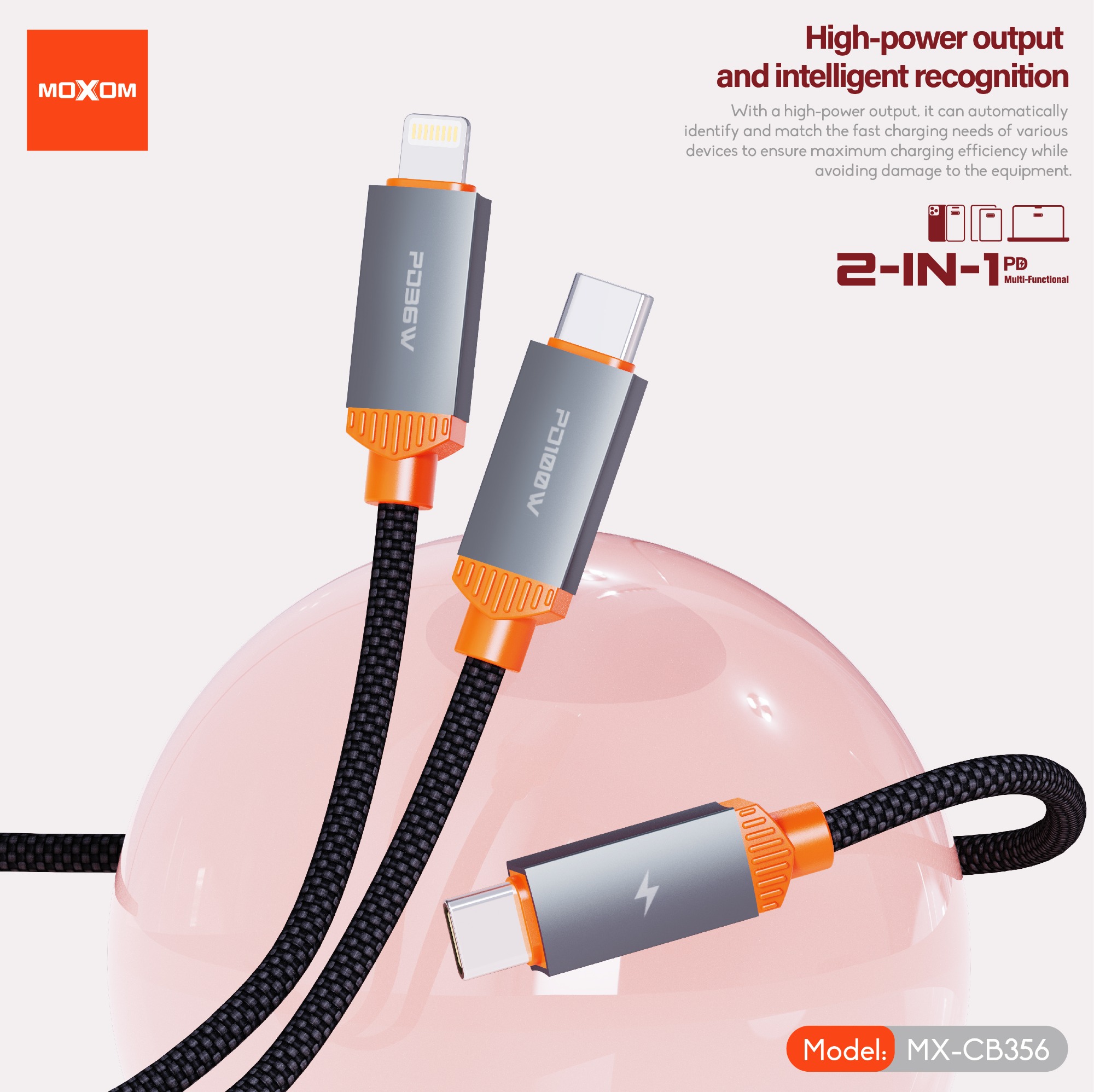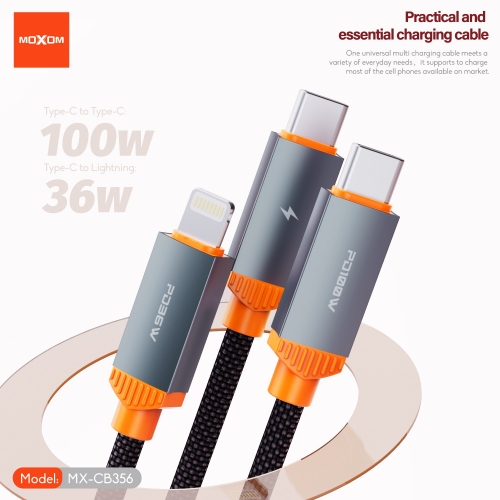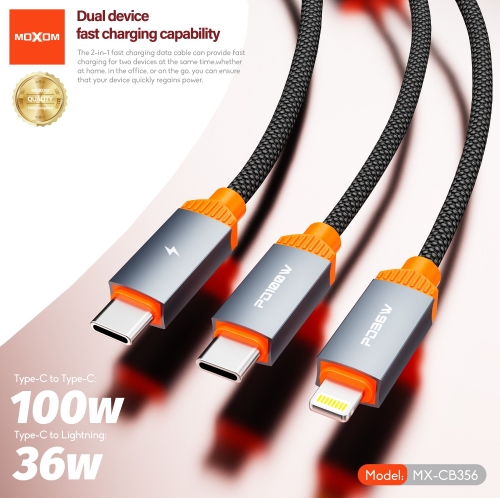 | Specification: Model:MX-CB356 Length:1.2m Output: Type-C to Lightning:36W Type-C to Type-C:100W Total Output: 5V3A |