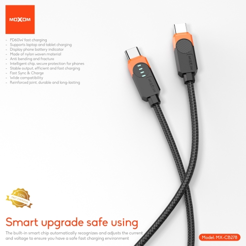 The built-in smart chip automatically recognizes and adjusts the current and voltage to ensure you have a safe fast charging environment.
