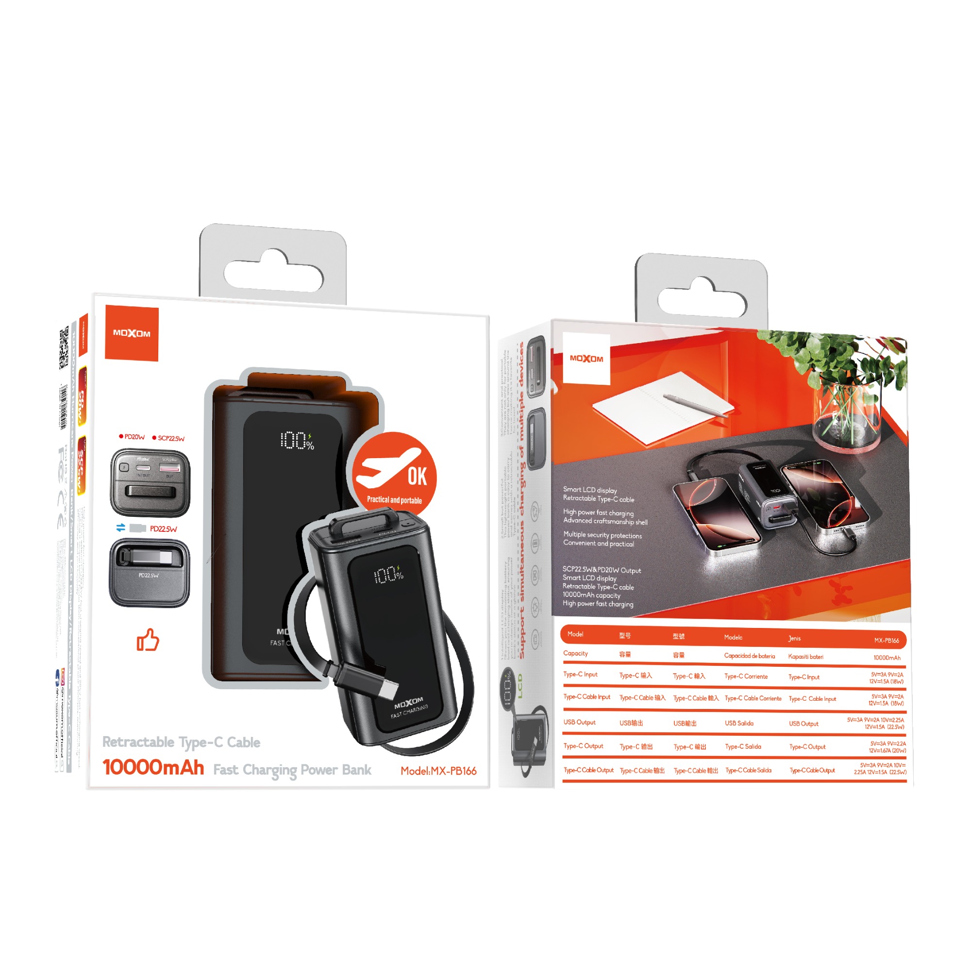 | High power fast charging Offers an astounding 22.5W fast charging speed and 20W fast recharging speed, making it several times faster than conventional phone chargers, maximizing efficiency and productivity Fortress-like security Implemented state-of-the-art security protocols, including overcharge, overcurrent, and short-circuit protection,your device is cocooned in safety while you indulge in effortless charging luxury Convenient and practical They are not only for portable charging but also around the home making it a favorite for travel,you could get more convenience and happiness from these high-quality power banks Support simultaneous charging of multiple devices Power bank has 10000mAh high capacity can give you an excellent battery life experience,keep your phone running Small but powerful This lightweight portable power bank is easy to carry and comes with a retractable Type-C cable Intelligent LCD display Shows you the remaining battery level and charging status, ensuring you're always aware of your power bank's status at a glance |