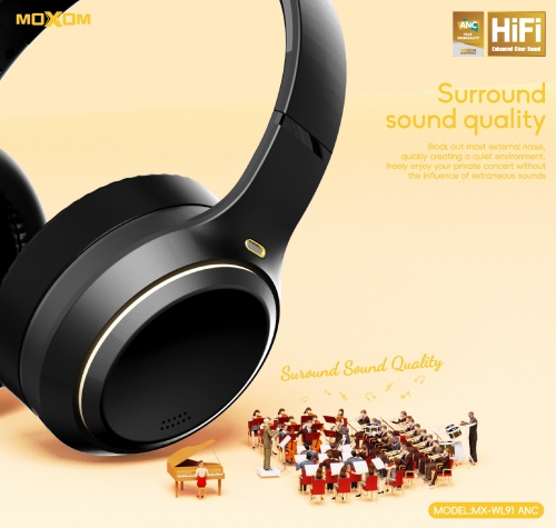 | Specification: Model:MX-WL91 ANC Wireless version: 5.4 Wireless distance: 10M Battery:350mAh Speaker size: 40mm Frequency range:2.402 -2.480 GHz Noise reduction amplitude:30±3dB Noise reduction frequency range:20-700Hz Sensitivity:119±3dB@1KHz Impedance:32Ω Music time:38H Talk time:30H Noise reduction music time:23H Noise reduction talk time:26H Charge time: 1.5H(Type-C) |